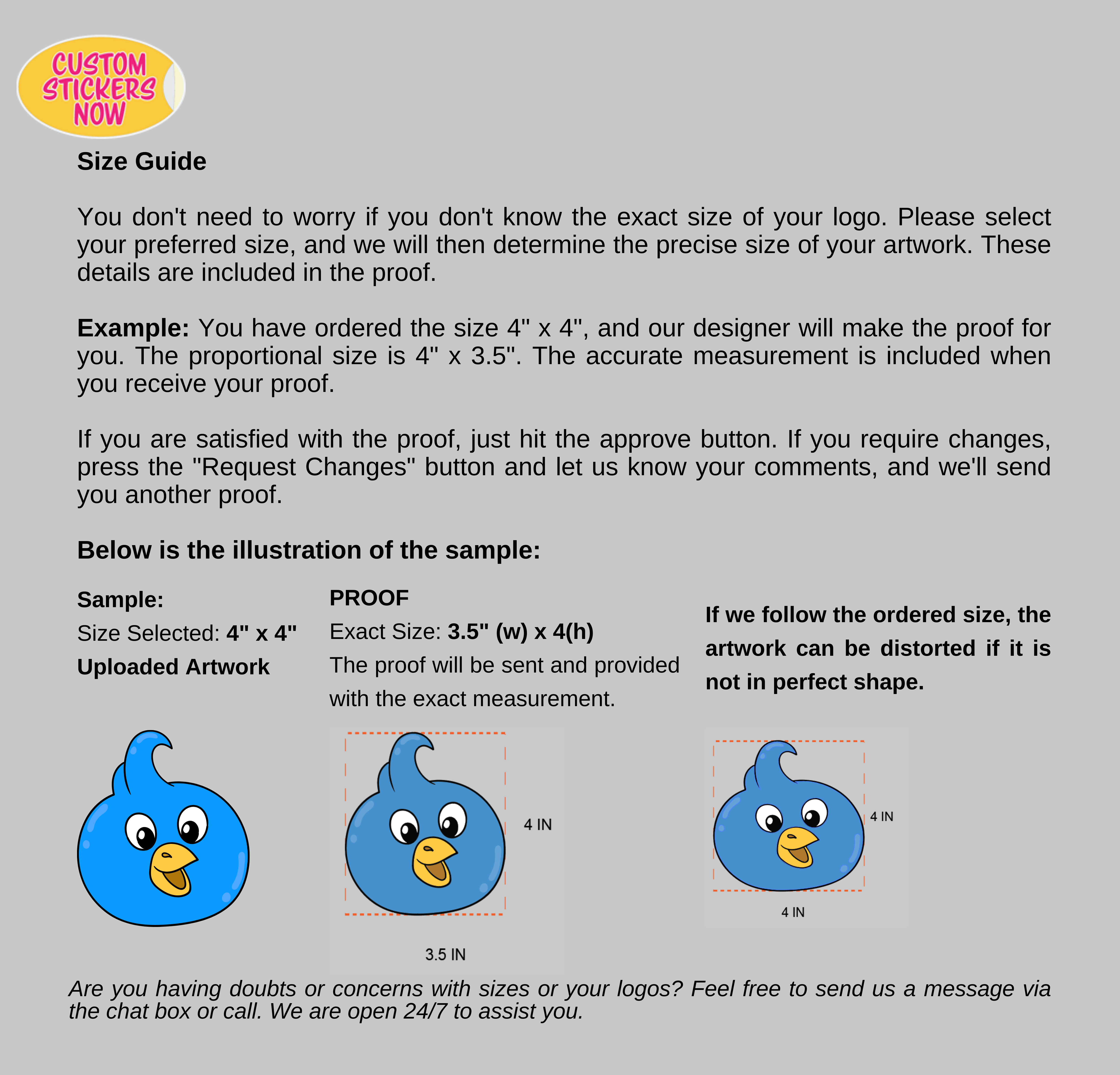 Our designers need to vectorize your artwork, if your artwork is not full color, so be sure to provide a high-resolution logo.